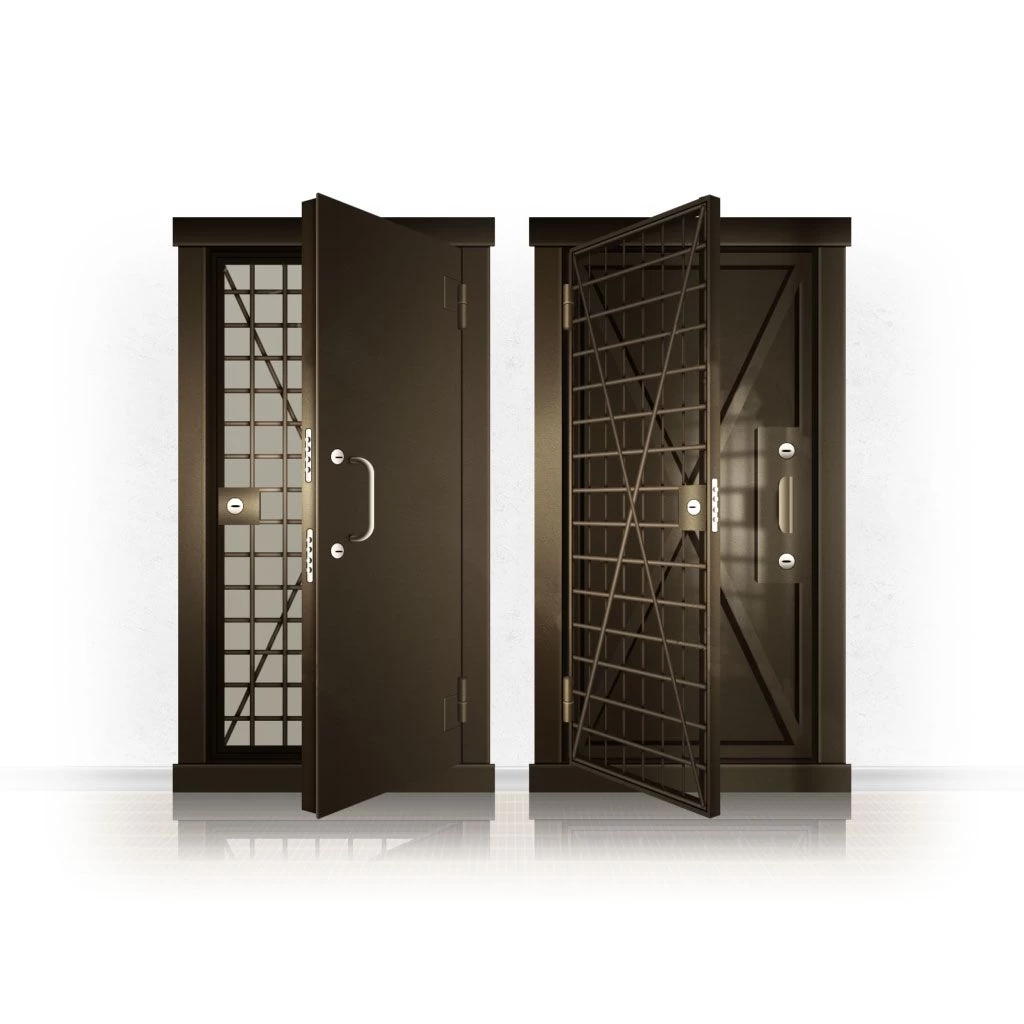 Металлические двери КХО и КХН представляют собой входные блоки, обладающие высоким уровнем взломостойкости и состоят из трех основных элементов: усиленного каркаса, сплошного металлического полотна и решетчатой двери. Дверной блок изготавливается из стального уголка 100*100 мм. Места крепления блока к стене цементируются и закрываются стальными наличниками шириной 40 мм. Крепеж заходит вглубь стены на 80 мм. В конструкции внешней створки монтируются ребра жесткости, для обшивки используется сталь толщиной не менее 3 мм. Внутренняя решетка изготавливается из прутка диаметром 16 мм. Размер ячеек решетки должен составлять не более 15 на 15 см. В точках пересечения прутья надежно приваривают друг к другу. В КХО и КХН необходимо поддерживать определенную температуру и влажность. Для этого внутреннее пространство глухой двери заполняется теплоизоляционным материалом, а по периметру двери приклеивается уплотнитель. Такие двери оборудуются замками с повышенным уровнем взломостойкости. Специализированные двери КХО и КХН в Сергаче могут быть оснащены сигнализацией, в конструкции могут быть проушины для навесного замка и элементами для опечатывания. Если идет речь о двери в комнату хранения оружия, в створке оборудуется окно для выдачи оружия и спец. средств, которое накрывается стальной дверцей.